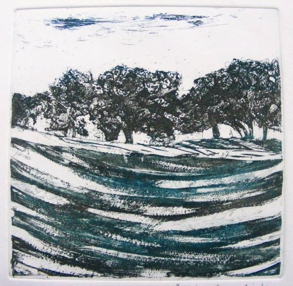 Annie brundrit Poringland Pudding Copse. Etching