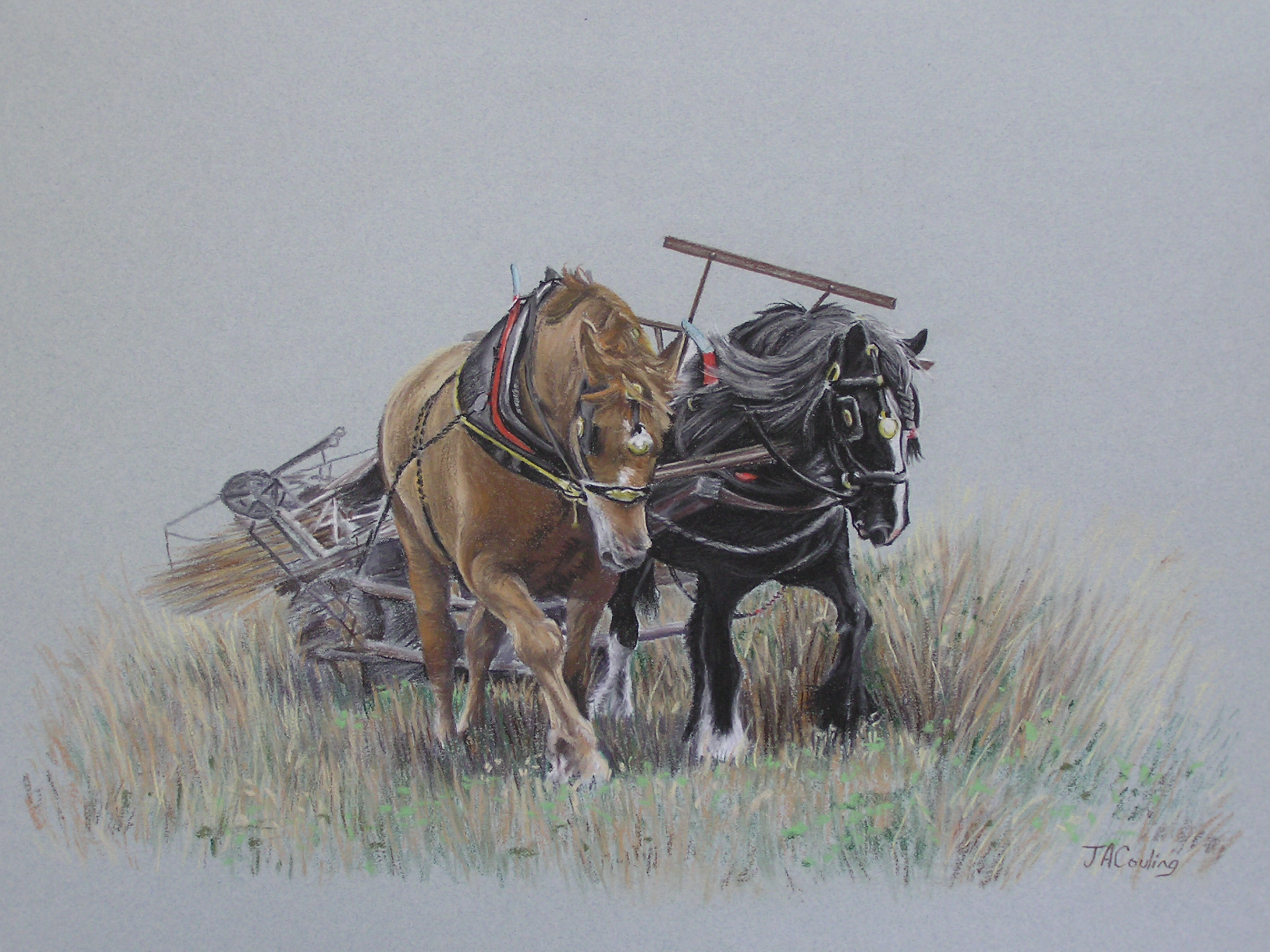 Jan Couling Clare. Working horses Shire and Punch Pastel
