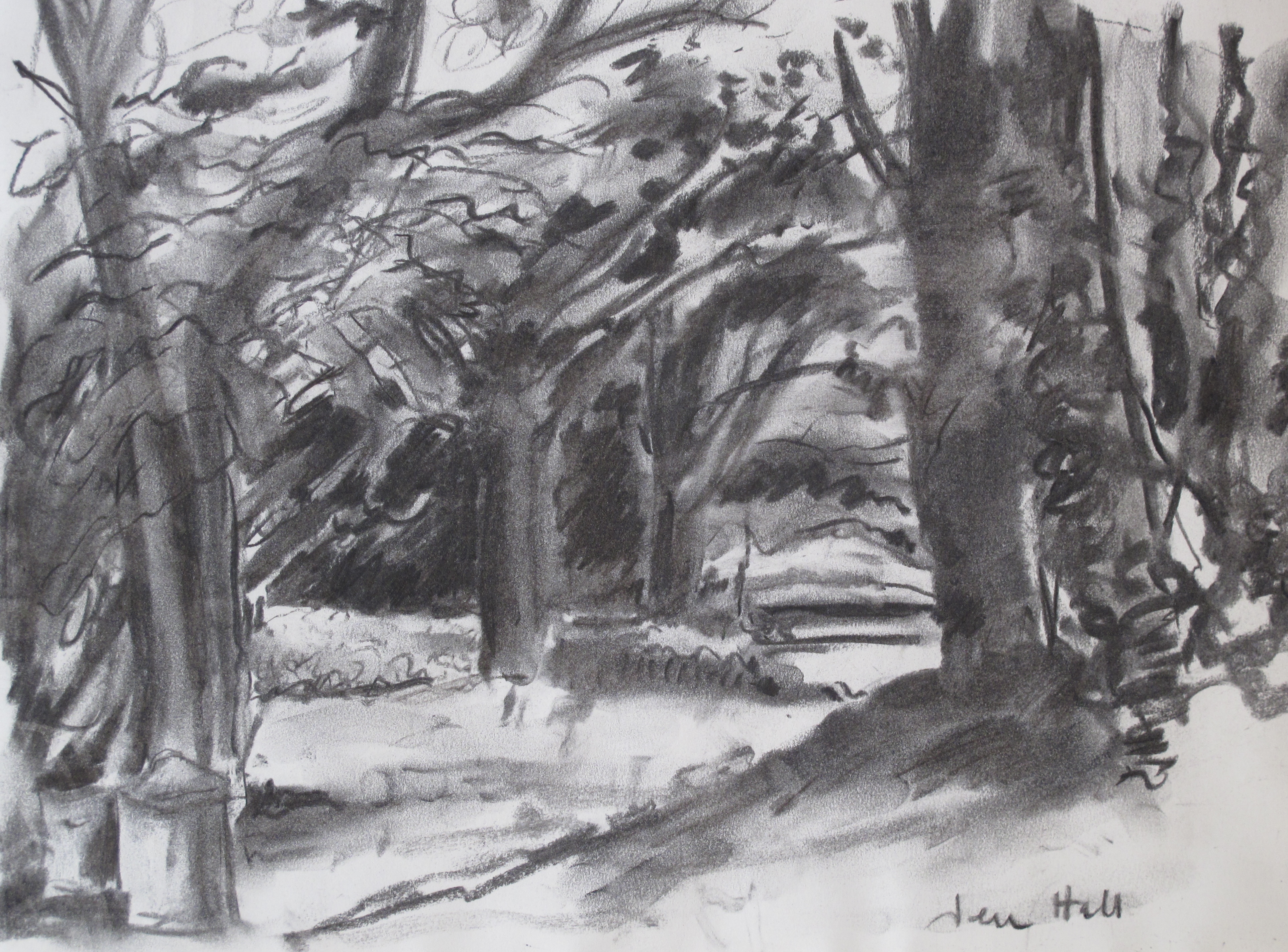 Jennifer Hall Melton. Under the trees Melton. Drawing Charcoal