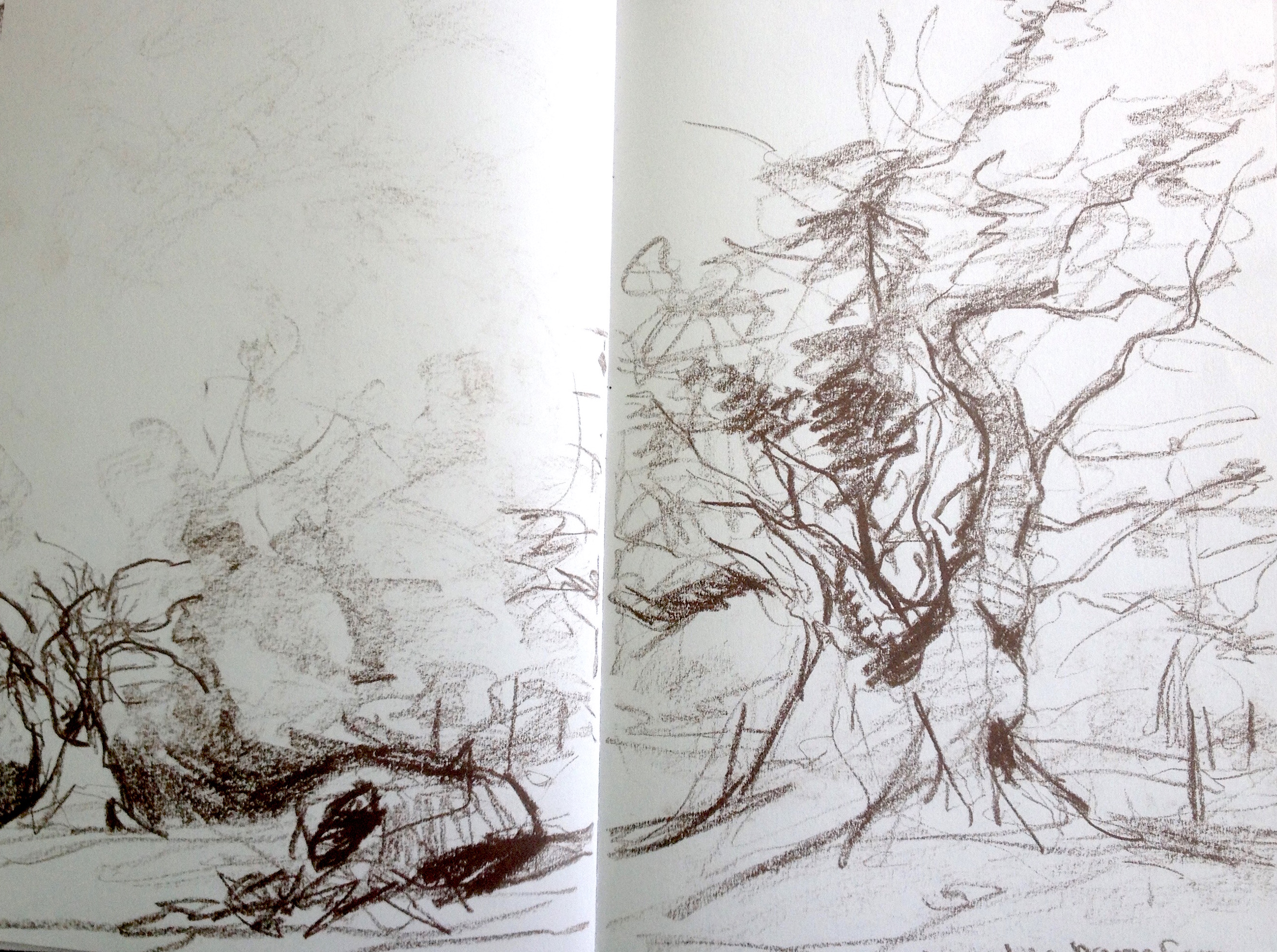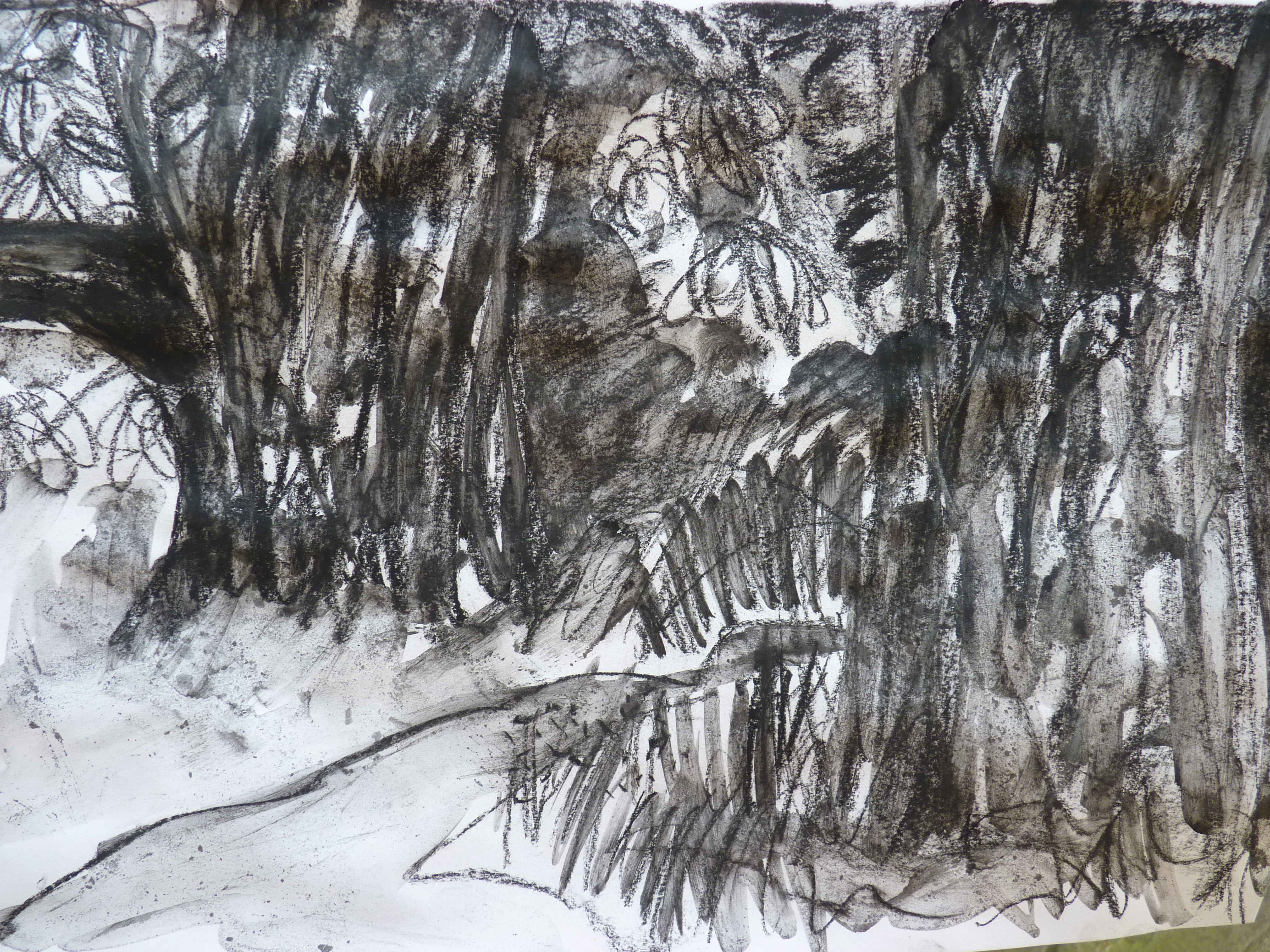 Ruth McCabe.Wenhaston. Shade under the big Sweet Chestnuts. Charcoal.