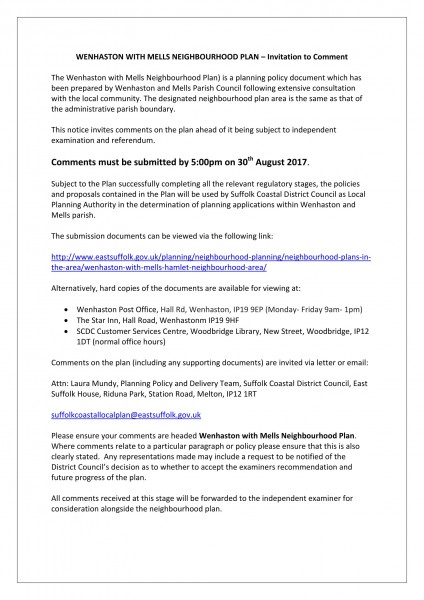 The Neighbourhood plan has taken it's next important step to being made. Suffolk Coastal District Council has published the Plan for comment for a statutory six week period starting Wednesday 19th July 2017. Comments, as shown below, should be received before 5.00 pm on Wednesday 30th August 2017 to be considered.